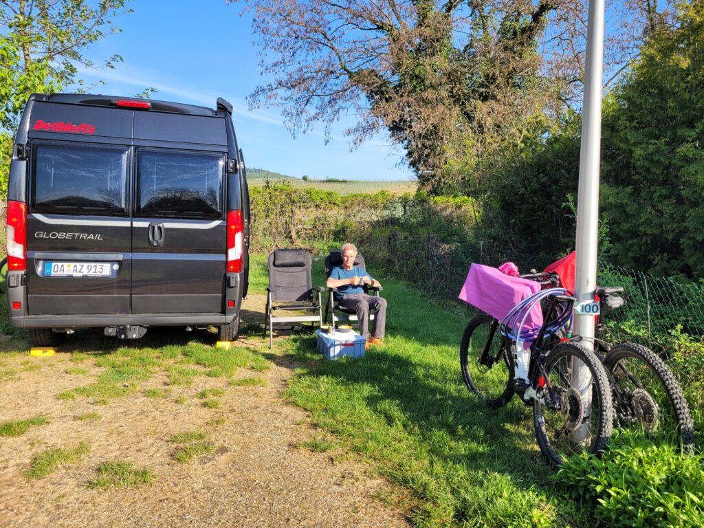 Ich drehe eine Versuchsrunde auf dem Campingplatz und beschließe, dass es geht. Habe nur Angst mich schnell umzudrehen und ernenne Gerd zum Beauftragten für jedes abbiegen. Er schaut und sagt mir, ob ich fahren kann.