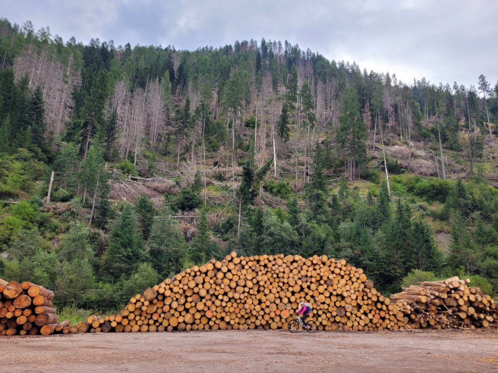 Und für das „Kind im Manne“ macht Gerd einen Abstecher zu einem kleinen Bike Parcours am Wegesrand. Die größeren schwierigeren Hindernisse und Sprünge durfte er nicht machen. Schließlich müssen wir morgen heim. Vielleicht wollte er es auch gar nicht. Wir haben es nicht ausdiskutiert…