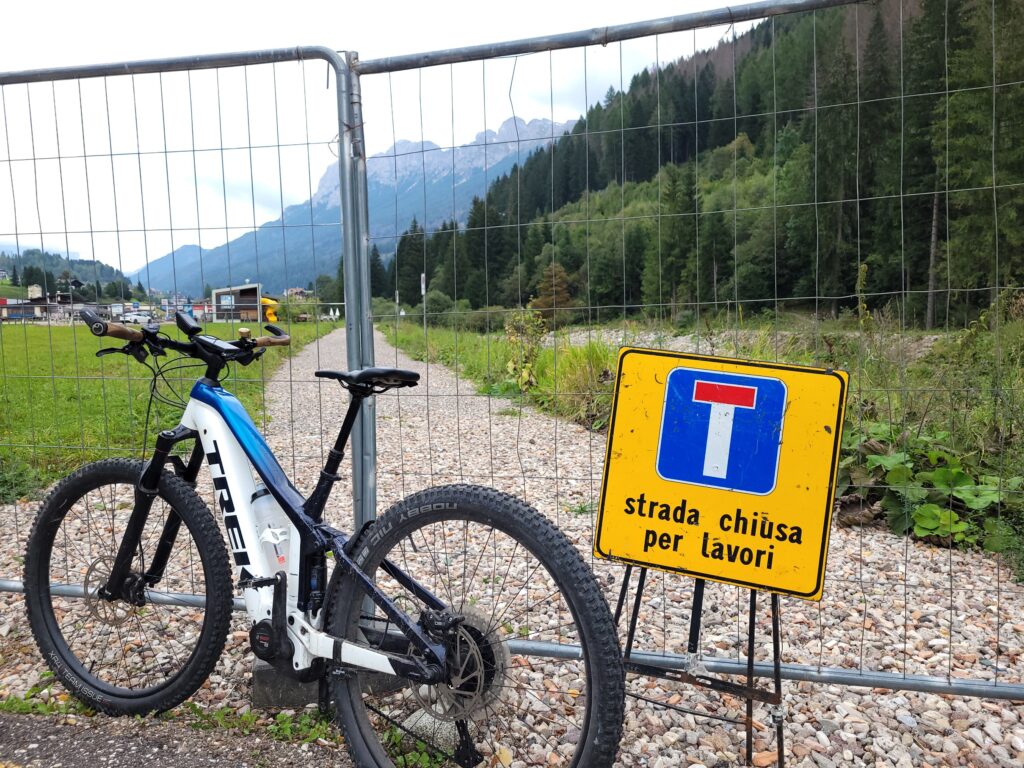 Als ob uns dieses Strada Chiusa diese Woche nicht schon gereicht hätte, steht plötzlich in einem Dorf mitten im Weg ein dicker Baulaster.