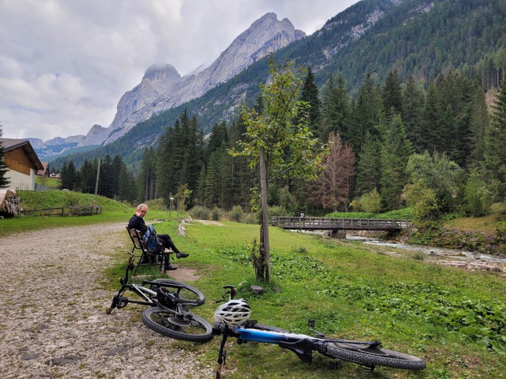 In Canazei bin ich doch ein bisschen enttäuscht. Ich hatte impliziert, Pass hoch bedeutet oben auf der anderen Seite runter schauen zu können. War aber nicht. Der eine Pass geht in den nächsten über. Naja, egal. Schöne Aussichten hatten wir ja jetzt auch wirklich im Überfluss.