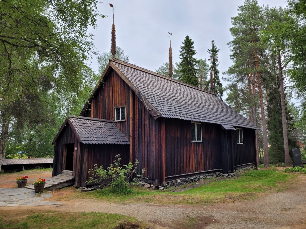 Die kleine Holz – Kirche in Sodankylä, eine der ältesten in Finnland, haben wir auch noch „mitgenommen“. Und auch hier lädt gerade ein (dt.) Reisebus seine Gäste aus.