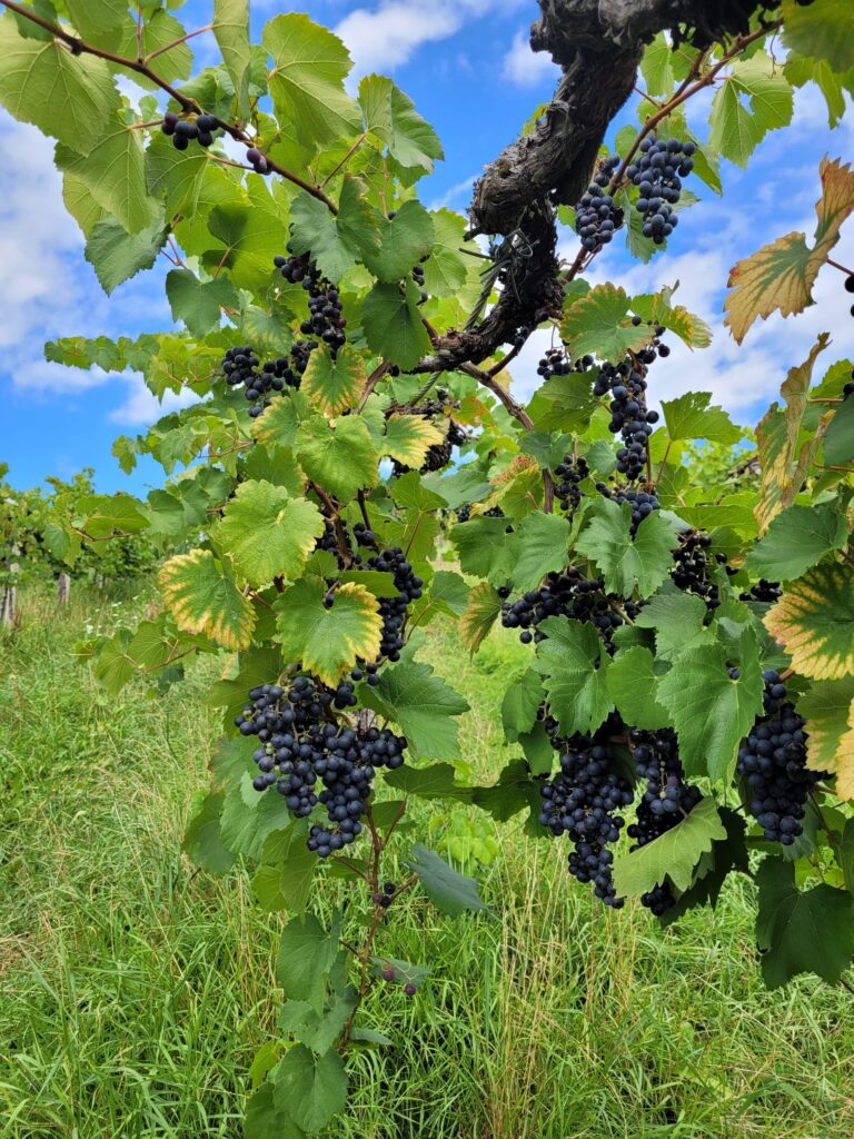 In den Weinbergen überall die reifen Trauben. Nächste Woche ist Weinlese, die aufgrund des Klimawandels auch immer früher wird.